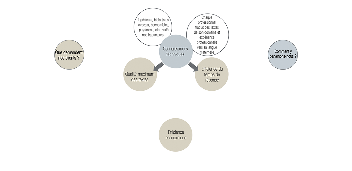 Le concept Qualité Metzger est basé sur trois éléments essentiels : les connaissances techniques des traducteurs et réviseurs, l’expérience et la gestion de la technologie et des processus de production.